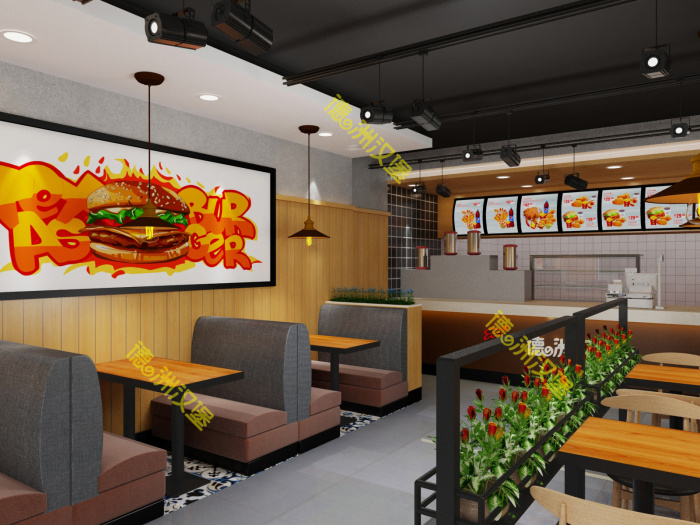 熱烈祝賀江西省萍鄉(xiāng)市蘆溪縣沿河?xùn)|路公園德洲漢堡餐廳效果圖新鮮出爐