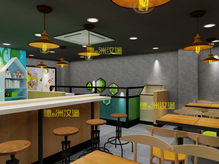 熱烈祝賀廣西玉林市北流鎮(zhèn)二環(huán)北路桃源德洲漢堡餐廳效果圖出