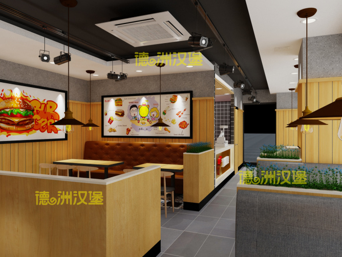 熱烈祝賀廣東省河源市連平縣發(fā)到家購物中心德洲漢堡餐廳效果圖出爐