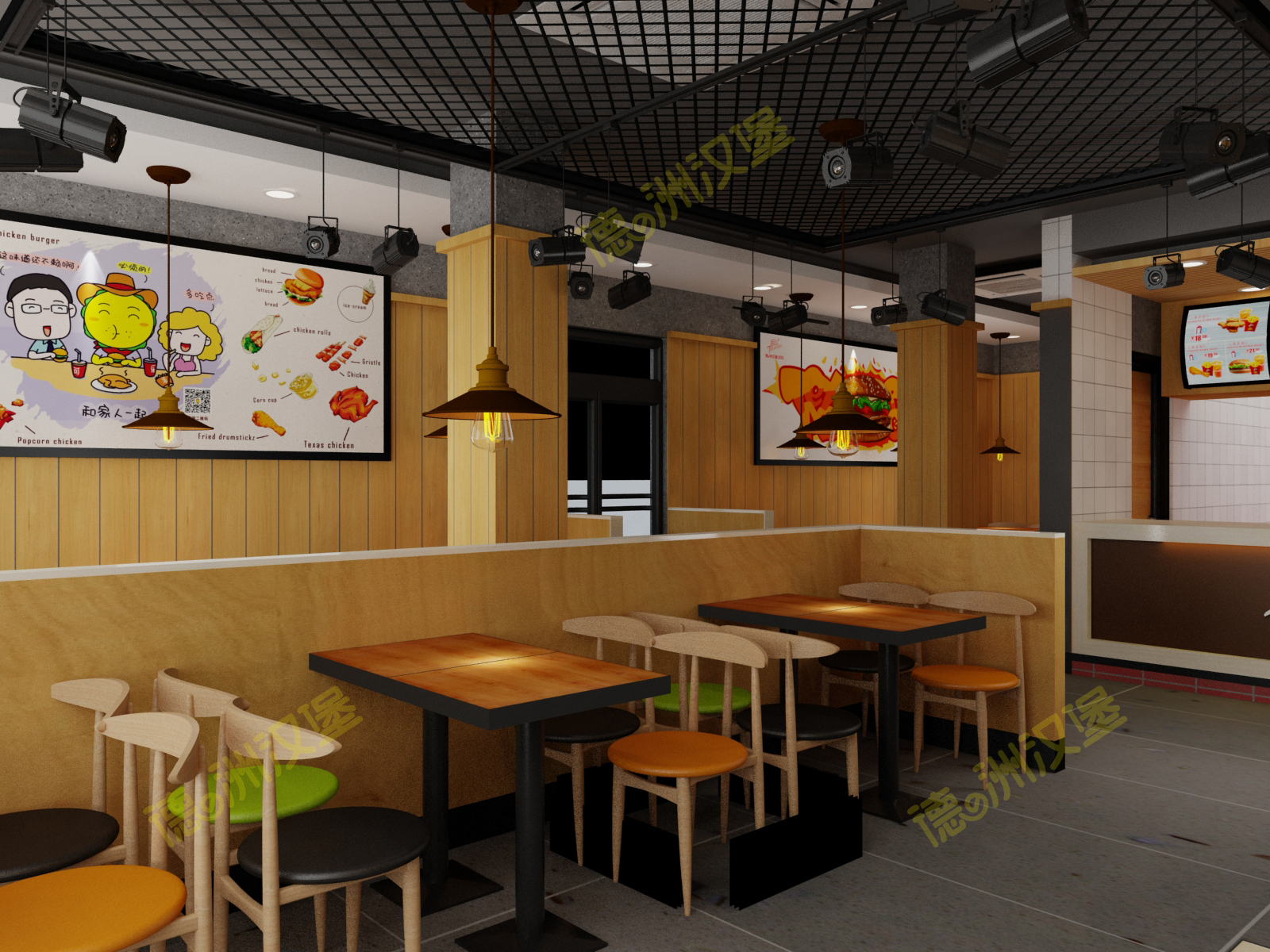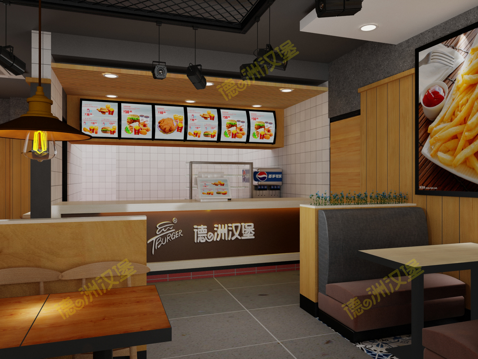 熱烈祝賀河源市紫金縣九和鎮(zhèn)益佳購物廣場德洲漢堡餐廳效果圖出爐