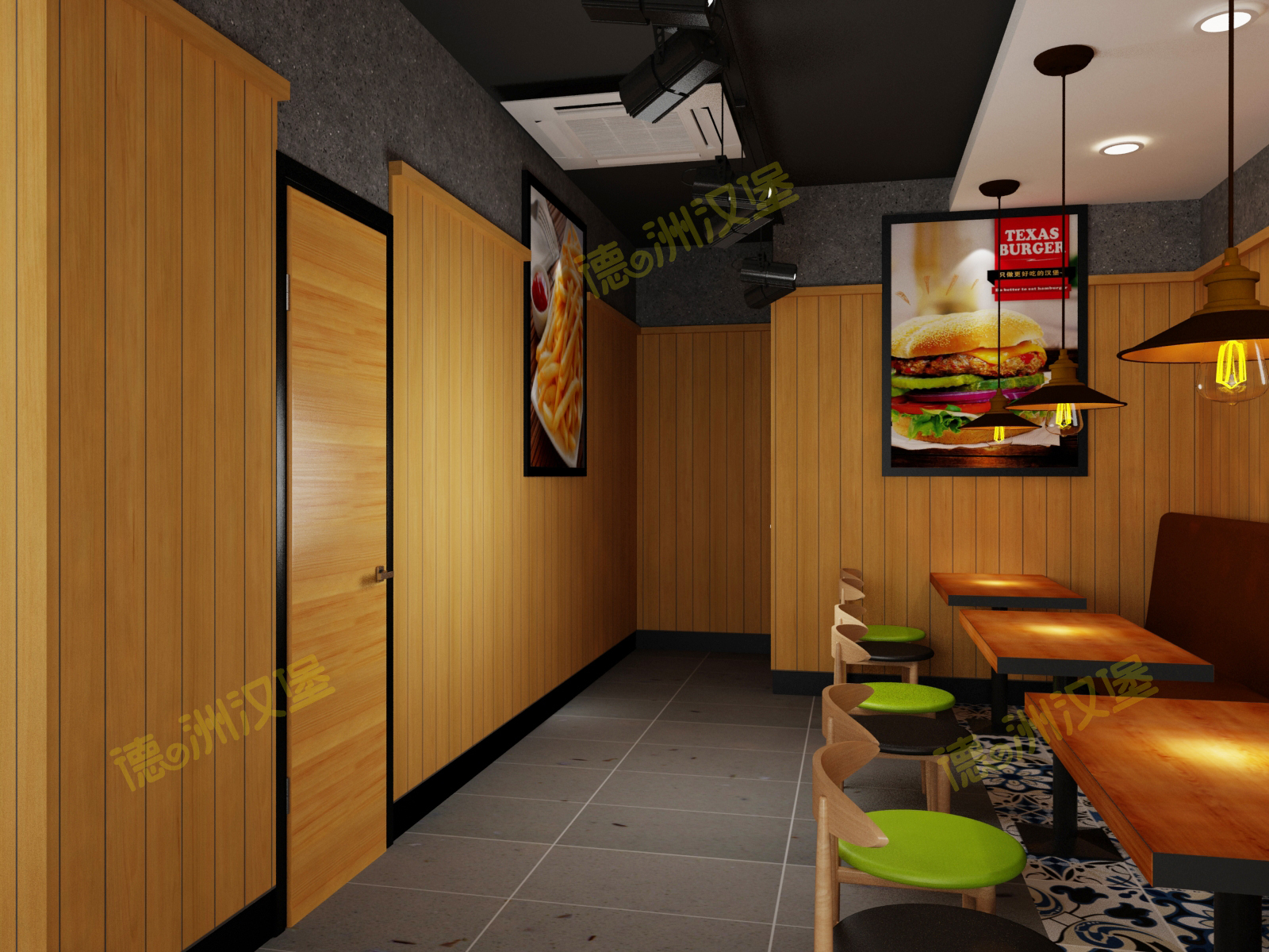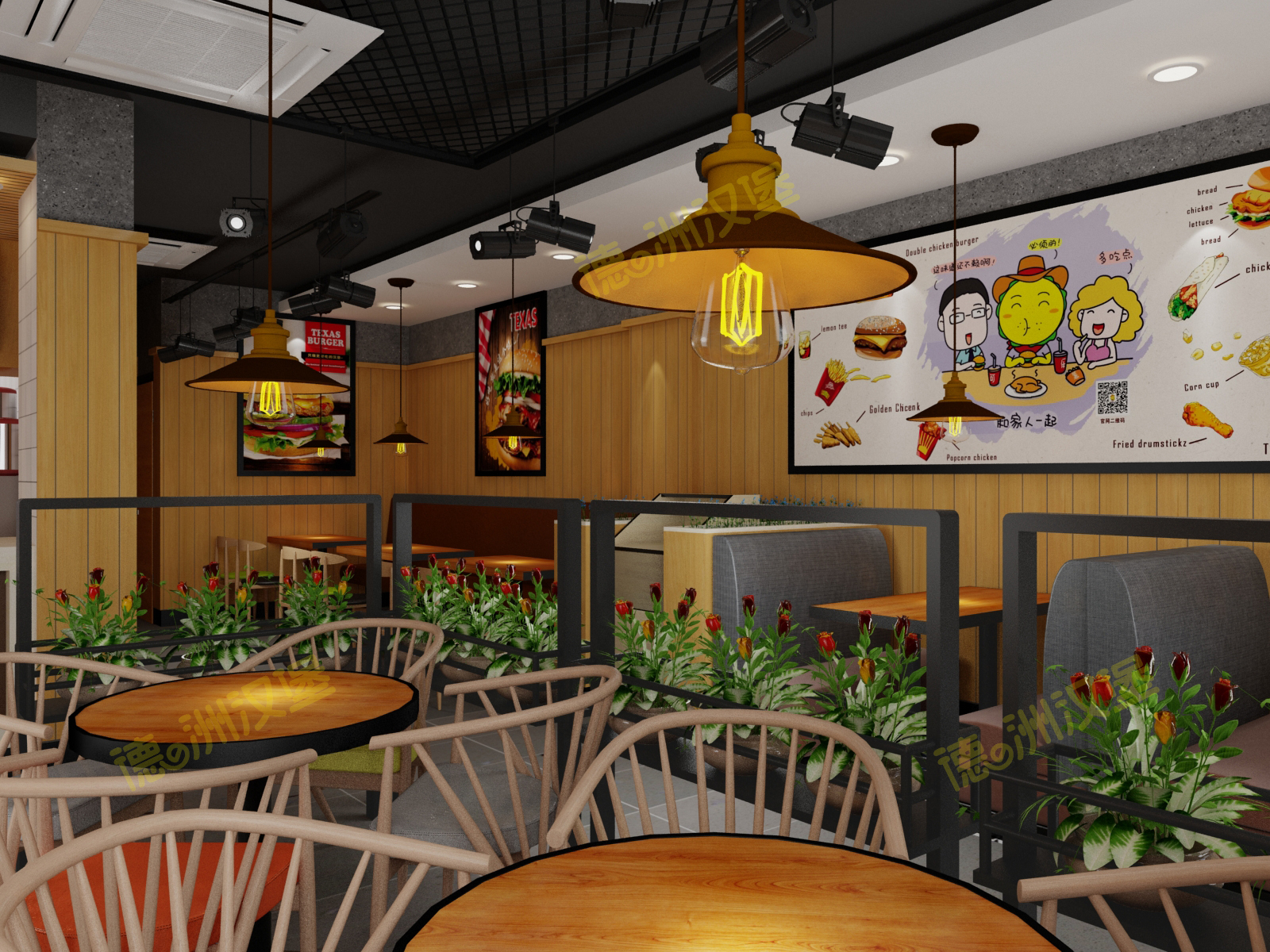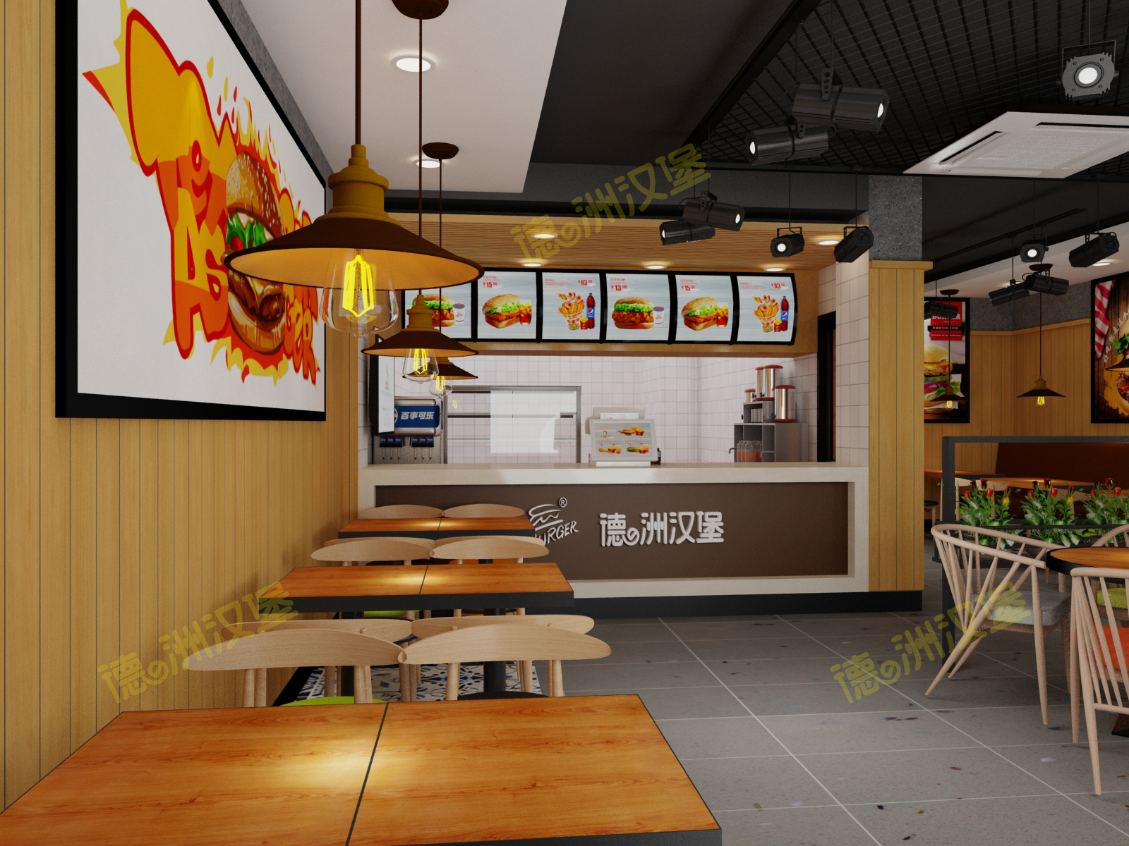 熱烈祝賀湖南省張家界市桑植縣瑞塔鋪鎮(zhèn)桑官線粵客隆購(gòu)物廣場(chǎng)對(duì)面德洲漢堡餐廳效果圖出爐