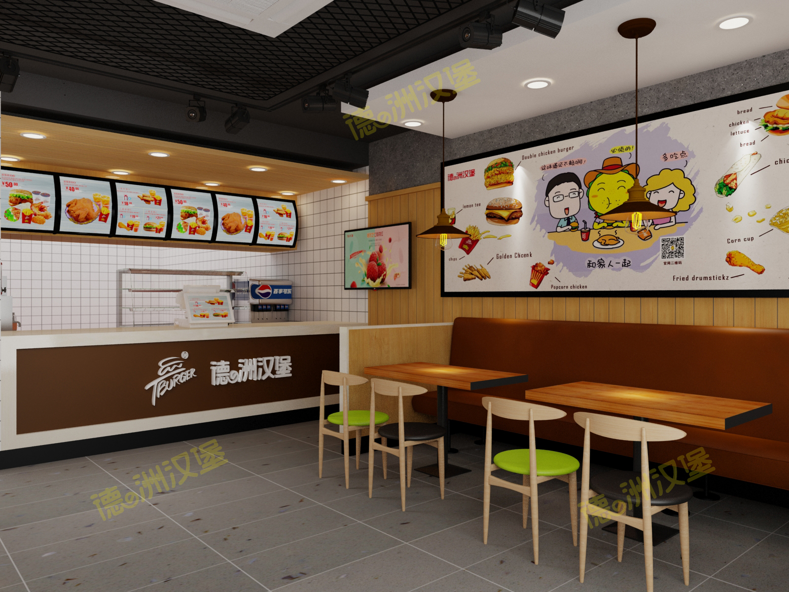 熱烈祝賀廣西柳州市融安縣長安鎮(zhèn)福家佳超市德洲漢堡餐廳效果圖出爐