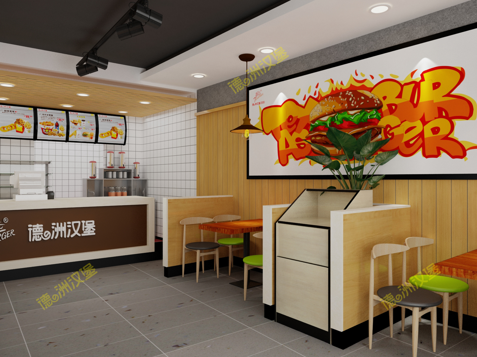熱烈祝賀廣西賀州市八步區(qū)開山鎮(zhèn)開山街德洲漢堡餐廳效果圖出爐